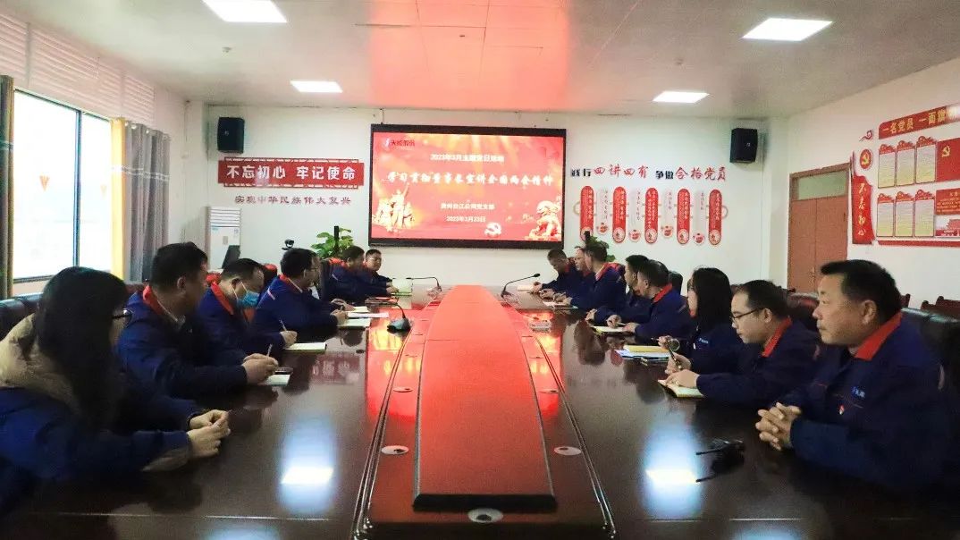 3月23日下午,贵州台江公司党支部开展“学习贯彻董事长宣讲全国两会精神有关讲话,让全体党员受教育谈体会”主题党日活动。通过学习交流,广大党员纷纷表示站在新的历史起点,要以负责任的态度深刻领会两会精神要点,不断解放思想,把两会精神落实到本职工作上来,把方法运用到生产经营中去,做好排头兵,坚持变革创新,为集团高质量发展不断努力,为国家经济发展贡献力量。