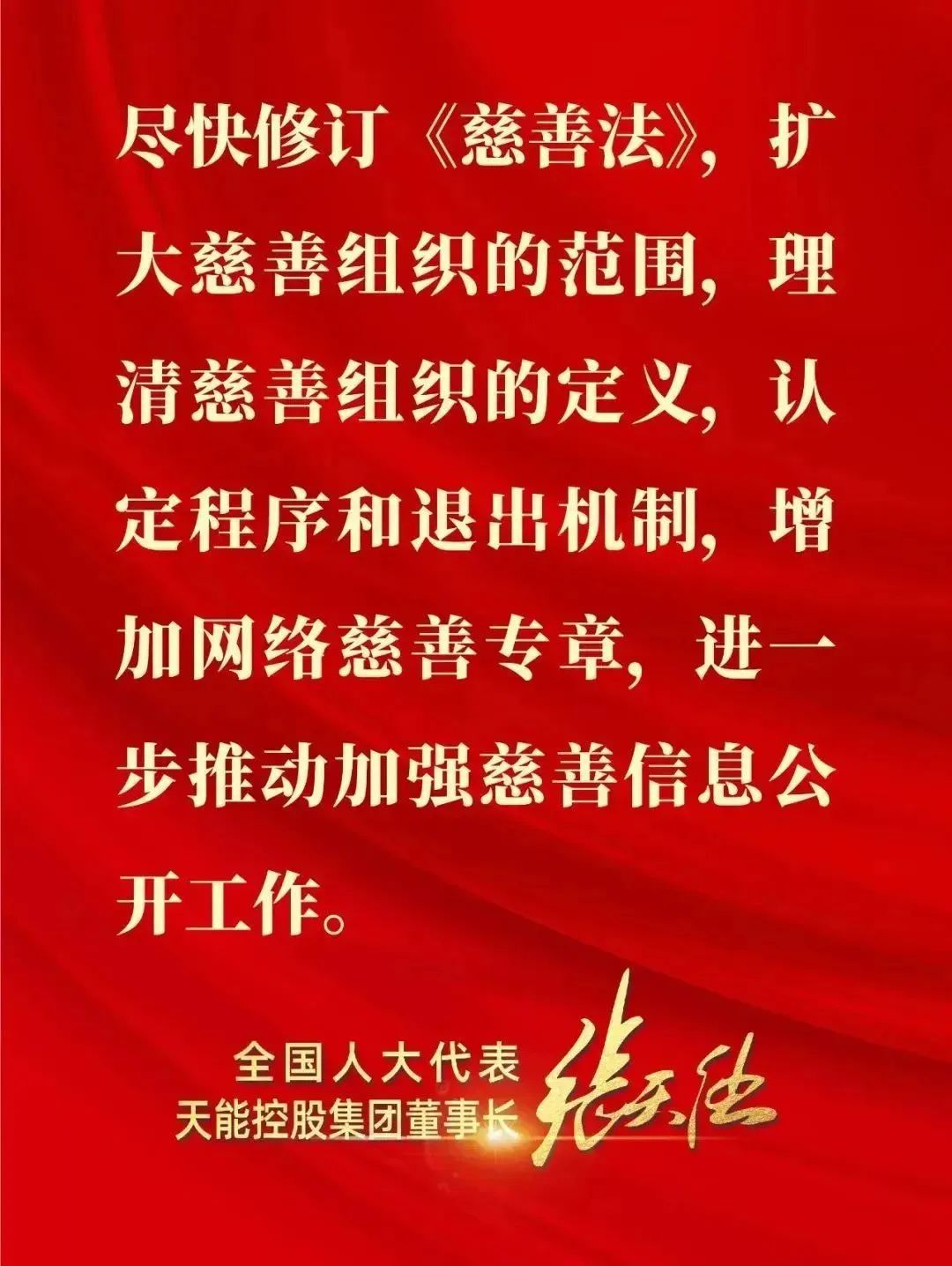 亚博体育 热衷慈善,来自于“当家人”张董事长的慈善之心。作为中国新能源电池行业连续三届全国人大代表,张董事长向全国人大提交了200多份议案和建议,涉及慈善理念方面的乡村振兴、教育、养老的就超过了50件,不少议案和建议得到了全国人大及相关部委的积极回应和采纳。